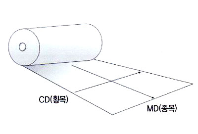 ÀÌ ¹æÇâÀ» MD(Machine Direction)¶ó Çϰí, ÀÌ¿Í ¼öÁ÷ÀÎ Æø¹æÇâÀ» CD(Cross Direction)¶ó°í ÇÕ´Ï´Ù. ÀÌ´Â °á¿¡ µû¶ó ¹°¸®Àû ¼ºÁúÀÌ ´Ù¸£°Ô